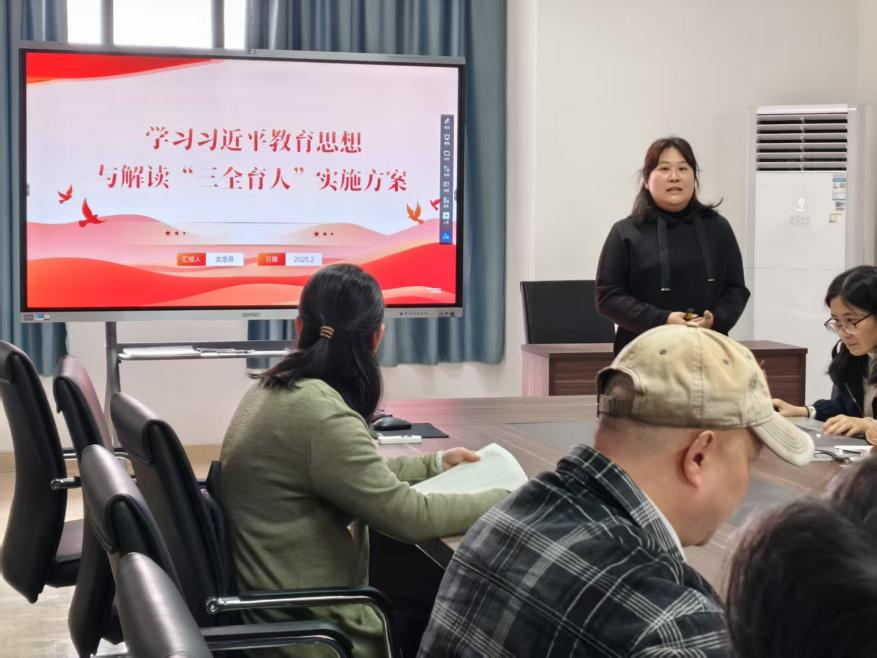 会议伊始,系党支部书记龙浩芬带领大家学习了习近平总书记《论教育》的主要篇目,并解读《中共太阳集团城网站2017委员会"三全育人"工作实施方案》,使教师们对学校整体的育人框架及具体实施路径有了更为清晰的认识,准确把握"三全育人"核心要义,将育人理念贯穿教育教学全过程。