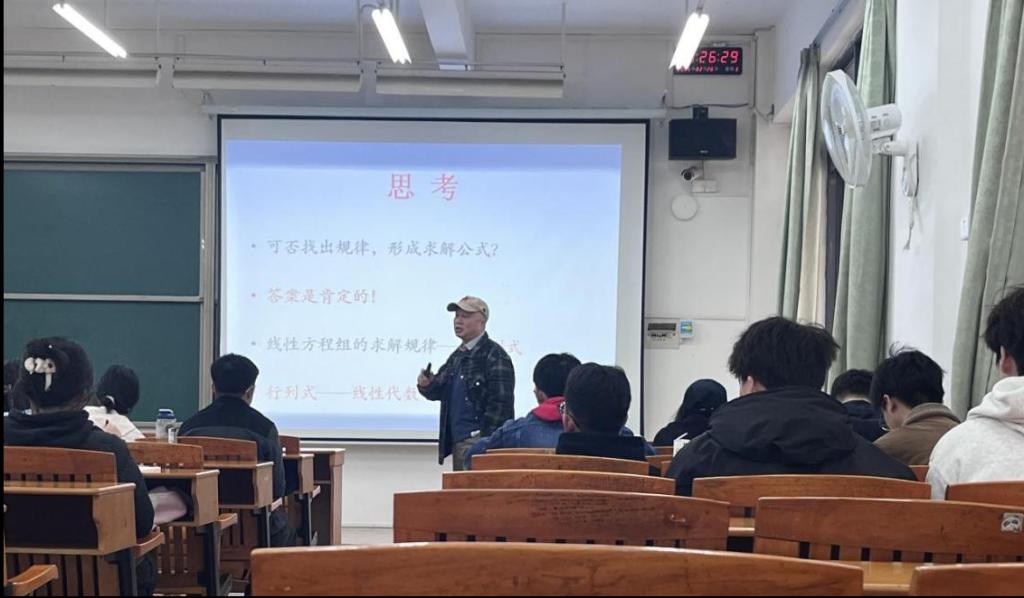 2025年2月26日上午,太阳集团城网站2017系(以下简称“我系”)24数据科学与大数据技术B班的同学们迎来了一场意义非凡的线性代数课程。课程由我系熊健主任主讲,他凭借深厚的专业知识底蕴和独树一帜的教学风格,将思政教育如春风化雨般巧妙融入数学课堂,为同学们开启了一场别开生面、启迪心灵的学习之旅。