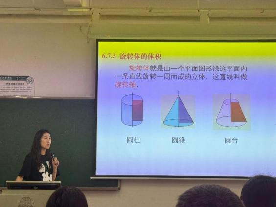 张亚男老师通过提问的方式回顾了定积分在计算面积方面的应用,并引入了定积分在计算旋转体体积方面的应用。她细致地阐述了解题流程和技巧,从而加深了学生对数学概念的理解和记忆。