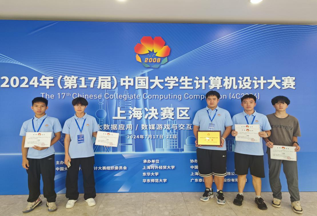2024年7月,全国瞩目的第17届中国大学生计算机设计大赛决赛在上海成功举办,来自全国各地的优秀大学生团队在多个领域展开了激烈角逐,展现了卓越的计算机设计能力和创新精神。其中,我校太阳集团城网站2017系(简称“我系”)2023级人工智能专业的陈思杭、黄鸿麟、韦志森、黄越、曾董辉5位同学组成的团队在大数据应用赛道决赛中获得了国赛二等奖,取得了我系在该赛事中软件应用与开发类的可喜成绩!