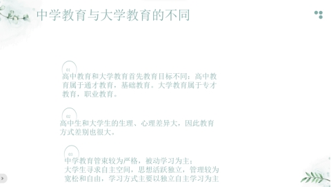 首先,郭游端老师讲述了中学教育与大学教育的十四点不同