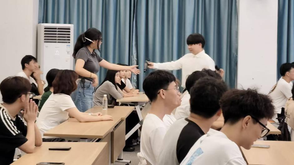 在“师兄师姐经验分享”环节,2023级优秀学生代表陈思杭、黄越依次发言。陈思杭学长鼓励新生抓住每一次上台机会:“大学是勇敢试错的舞台,别因害怕‘不完美’而错过锻炼自己的可能。”并且建议以赛促学:“参与竞赛能快速将理论转化为实践,失败也是定位短板的好机会。”黄越学长则强调实践与责任:“志愿服务能拓宽视野,担任班委或学生干部则能培养领导力——责任感是在服务中自然生长的。”新生们纷纷表示,学长学姐的建议让他们对大学生活有了更具体的规划。