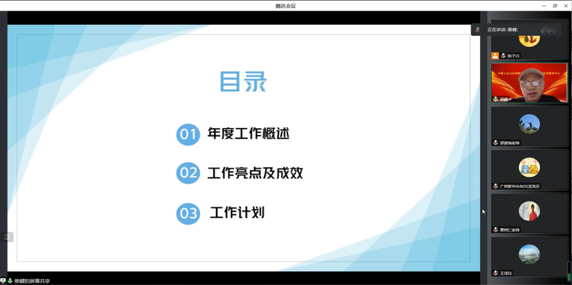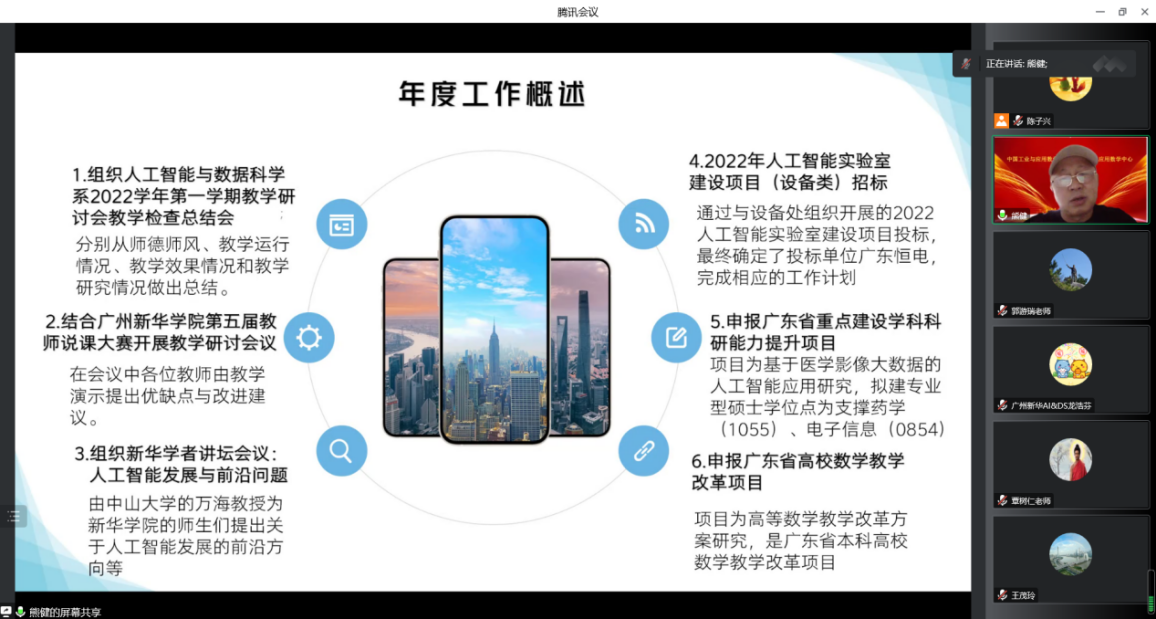 根据学校的工作部署,为做好2022年度工作总结及下学期工作计划,我太阳集团城网站2017系(以下简称“我系”)于2023年1月5日下午在腾讯会议召开了2022年度工作总结会议。分管副校长姚正安,学校督学刘东远,系主任熊健以及系全体教职工参加了本次会议。会议由熊健主持。