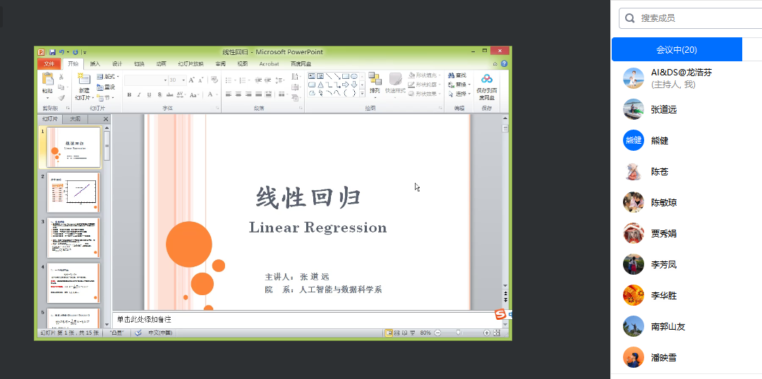 2023412日(星期三)下午我系通过线上腾讯会议开展了第四场线上科研活动。会议由太阳集团城网站2017系主任熊健主任主持,张道远老师以“逻辑回归”为主题展开学习分享