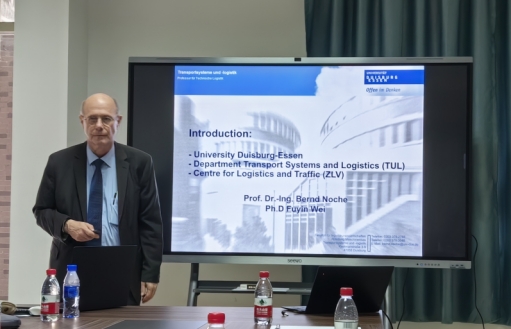 Bernd Noche教授介绍了德国杜伊斯堡艾森大学,校区位置在欧洲工业区—德国鲁尔区,距离柏林开车4小时,交通非常便捷。杜伊斯堡是渝新欧铁路的终点,欧洲物流的中心,也是一带一路国家科技合作项目的终点站。Bernd Noche教授从1987年开始孵化成立公司,主要做仿真模拟、软件方面。物流港是一个欧洲促进项目的重要例子,物流港发展了1、2、3期。AI人工智能应用于物流港调度、数据分析等方面。杜伊斯堡艾森大学是德语区最好的高校,最大的硕士点,目前有600-700名在读硕士。该校没有本科生,主要培养硕士生和博士生,拥有高水平的物流教学,招硕士生工程背景、IT背景、数据统计背景即可,培养交叉学科人才。硕士生毕业前景很好,就业机会多,例如科研,纳米科学、生物医药、城市系统等方向。Bernd Noche教授介绍了相关科研项目,例如数字化物流规划及仿真、工业及城市系统项目产品、物流仿真应用实例-交通路口仿真、一带一路国家科技合作项目、成立了浙江省重点企业研究院及海外技术研发中心和中国国际投资促进中心(德国)申请项目,建议物流与数字技术结合,研究领域可以从食品行业、化工行业、农业、医疗方面进行。