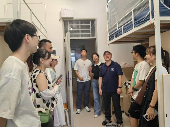 当天下午,我系老师们走访了新生宿舍。系主任熊健、办公室主任兼党支部书记龙浩芬、张道远以及张莎莎老师一行人与学生们亲切交谈,询问入住情况,倾听新生的需求和建议,并鼓励他们在新的环境中积极适应、努力学习。这种面对面的交流不仅加深了师生之间的感情,也使新生们感受到了学校的关心与支持。