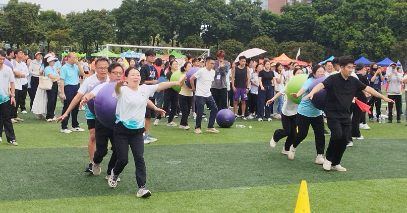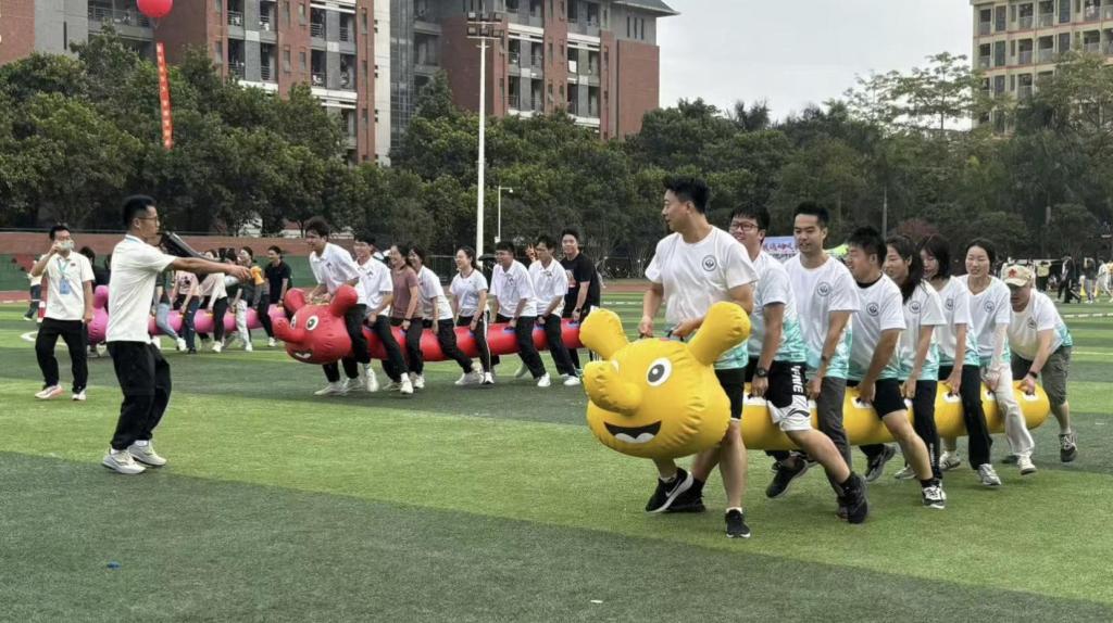 除了传统的田径项目,本次运动会还设置了教工趣味运动项目,这些项目不仅考验了学系老师们的运动技巧,更注重团队协作能力。赛场上,他们相互配合、齐心协力,欢笑声和加油声交织在一起,充分展现了团结友爱的精神风貌。