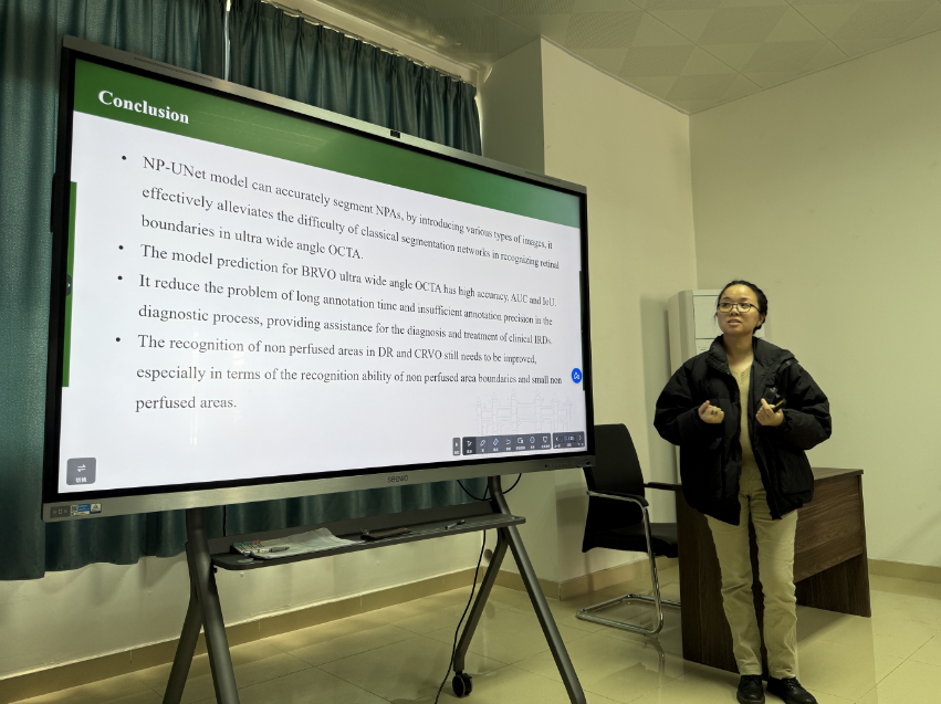 田婷副教授分享“利用NP-UNet模型对分支视网膜静脉阻塞患者的超广视野SS-OCTA图像中的视网膜无灌注区自动量化研究