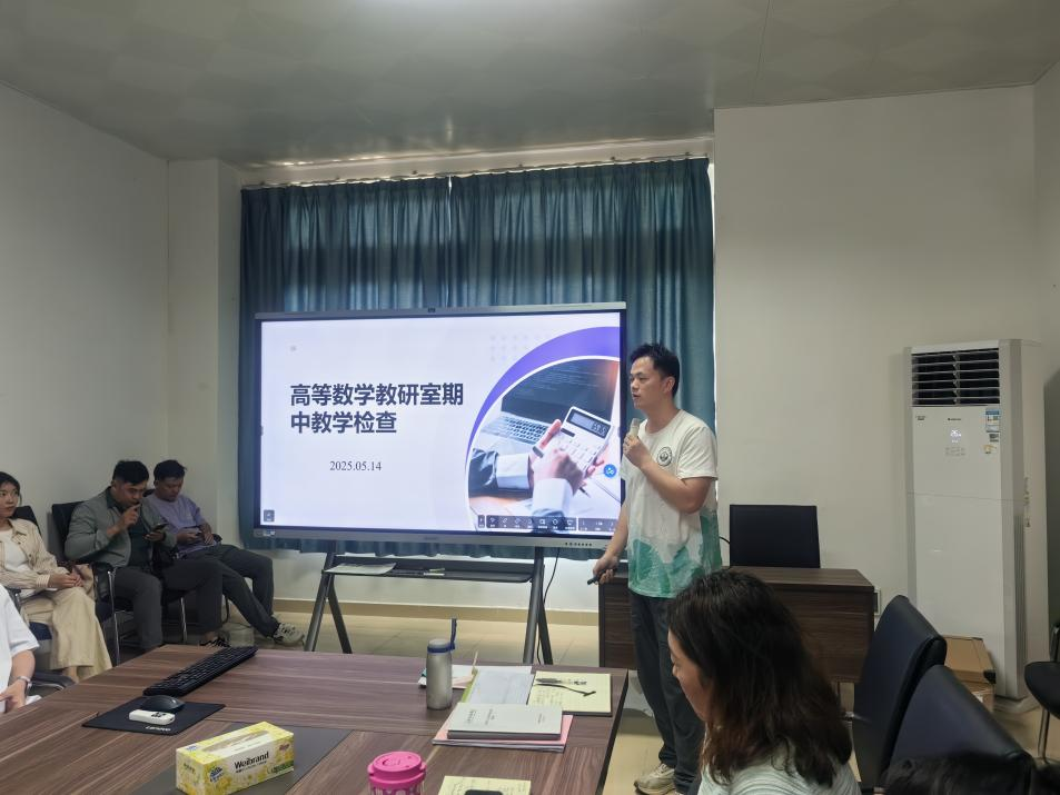 随后,我系三位教研室负责人依次上台,就各自负责的期中教学检查情况进行了详细汇报。高等数学教研室张道远副主任首先展示了教研室在本次检查中的亮点工作,例如提前制定详细的计划安排,组织新入职教师进行观摩学习,开展教师之间的交叉互查教学材料等。同时,对本学期的高数课程进行期中教学评价。根据学生反馈,教研室针对反馈较多的问题,制定了切实可行的整改方案。
