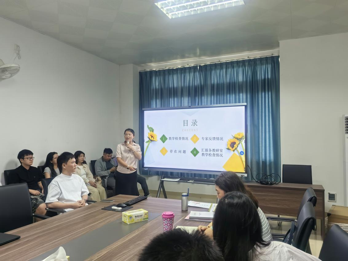 在会议的最后阶段,熊健主任对本次期中教学检查进行了全面的总结。正如姚正安副校长所说“没有教不会的学生,只有不会教的老师”,熊主任强调每一位任课教师都需要认真自省自己的教学情况和教学水平,将不断学习、修正和提高教学能力作为日常工作的重中之重。同时,熊主任还要求教师们要密切关注学生的学习情况,加强与学生的沟通交流,深入了解他们的学习需求和困难,以便更有针对性地开展教学工作。
