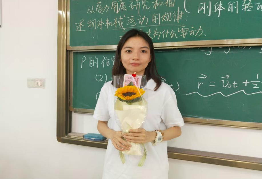 教师节清晨,三间教室陆续迎来暖心时刻。在《数据结构》《大学物理》《概率论与数理统计》三门课程的课前,学习委员与班长手捧金黄的向日葵依次走上讲台,向何玉花、刘鸣慧、张亚男三位教师献上节日祝福。面对这份突如其来的惊喜,老师们难掩笑意,双手接过花束时眼中闪烁着感动——那笑容里既有被学生铭记心意的欣慰,也有对教育初心被看见的温暖。还有那些镌刻在卡片上的简短祝福——“感谢您带我们探索知识的逻辑之美”“您让物理公式有了温度”“您教会我们把握人生的‘概率’”——既是学生们对学科魅力的诗意诠释,更是将老师日常教学中的严谨、温情与智慧,凝练成最真挚的感恩。当向日葵在晨光中舒展花瓣,这些话语也随花香飘进师者心田,成为教师节最动人的回响。