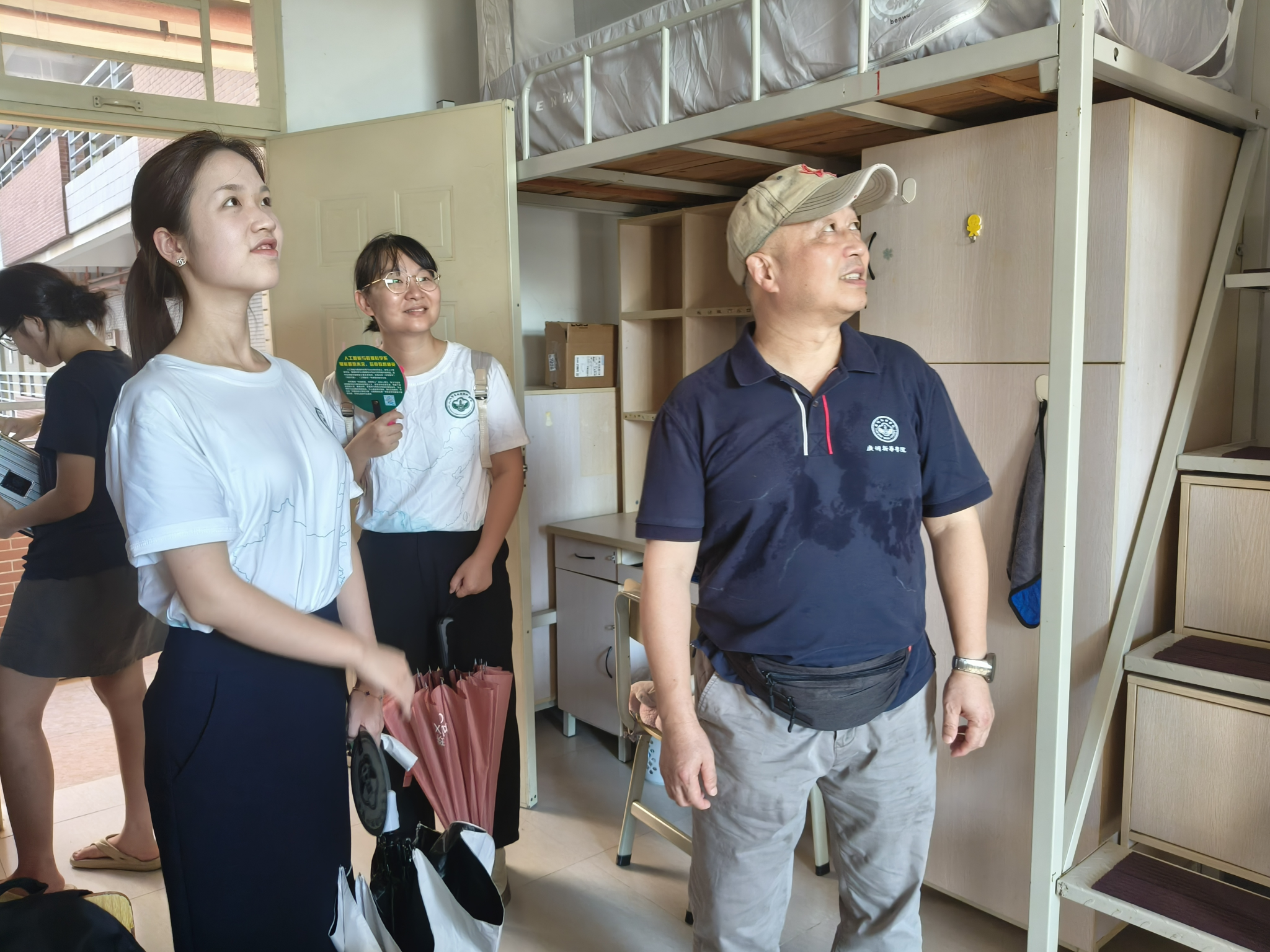 下午,系主任熊健教授带领团总支书记高婷、辅导员刘碧云等老师走访新生宿舍,与新生及家长亲切交流。老师们仔细查看宿舍环境,询问新生入住感受,叮嘱他们要尽快适应新环境,与室友友好相处,在大学收获珍贵的友谊与成长。新生们脸上洋溢着兴奋与好奇,对即将开始的大学生活充满了向往。