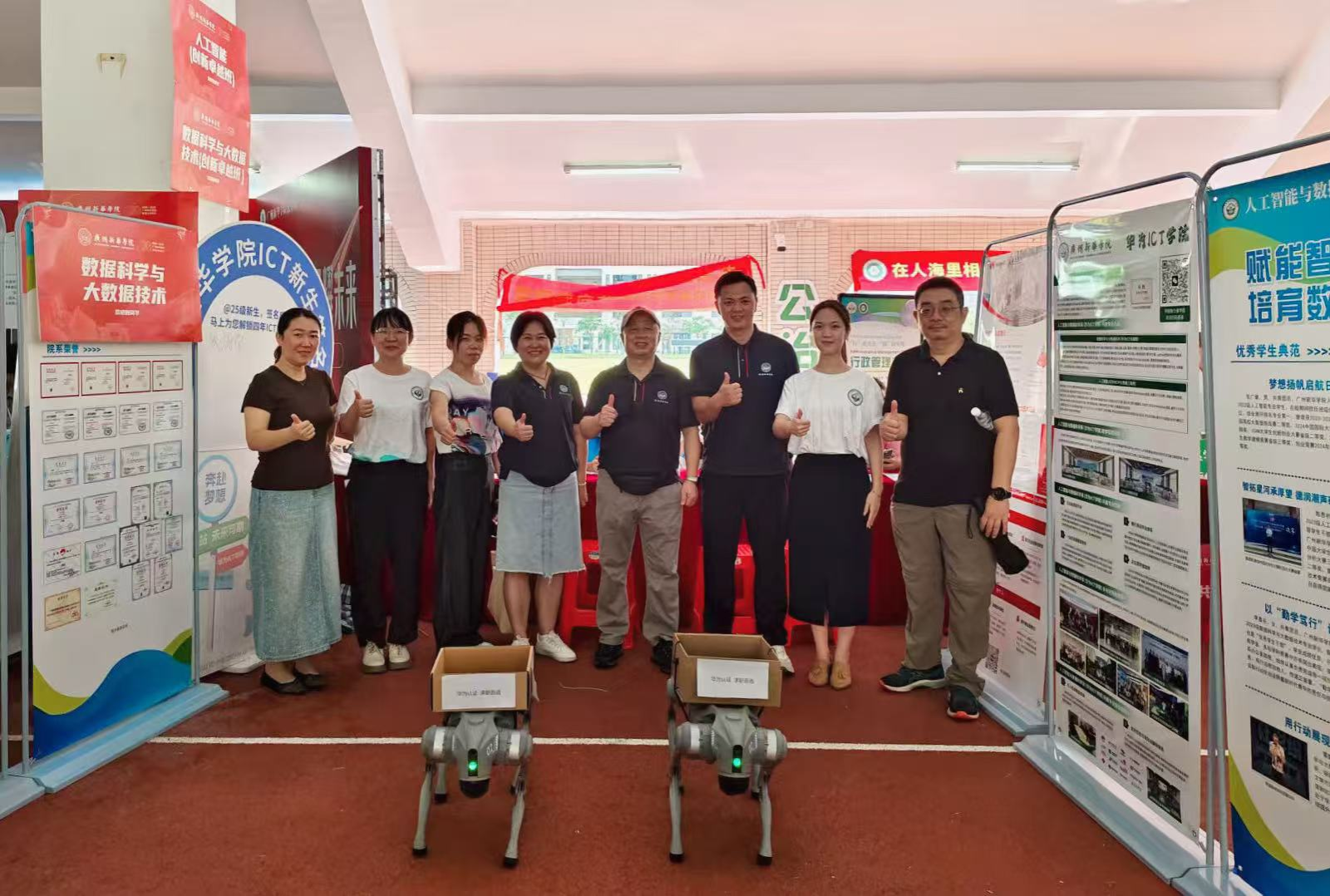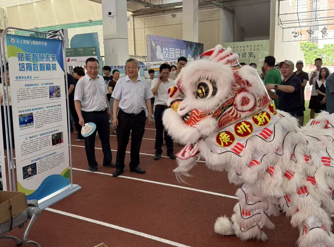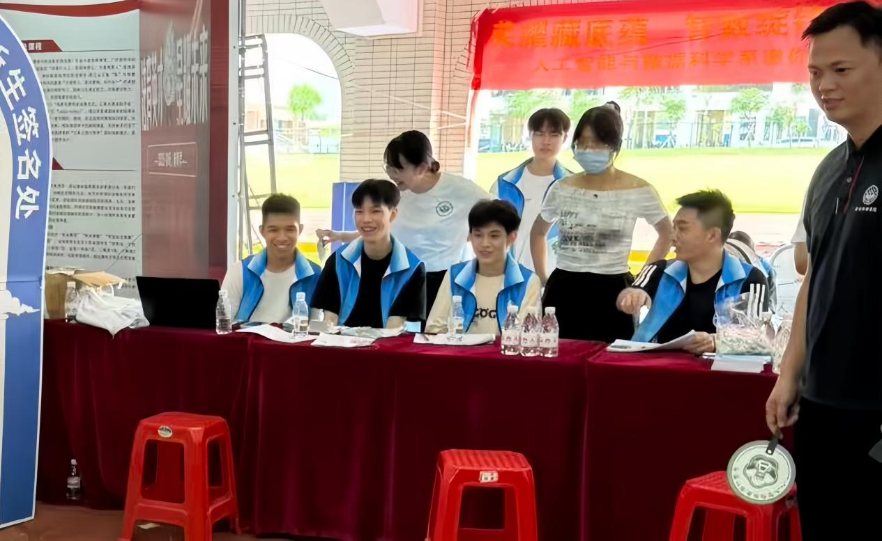校园内的迎新活动现场热闹非凡。我系的专业迎新点,以“赋能智慧未来,培育数智精英”为主题,吸引了众多新生和家长的目光。醒狮表演精彩绝伦,灵动的狮子与智能机器狗互动,传统与科技在此碰撞交融,既展现了中华文化的独特魅力,也彰显了专业在人工智能领域的创新成果,让新生们直观感受到专业的特色与活力。