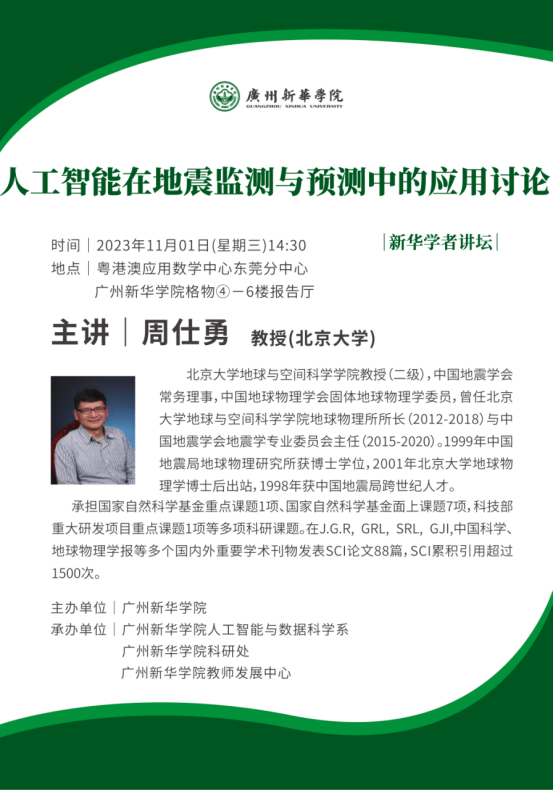 (活动预告)学术讲座——人工智能在地震监测与预测中的应用讨论