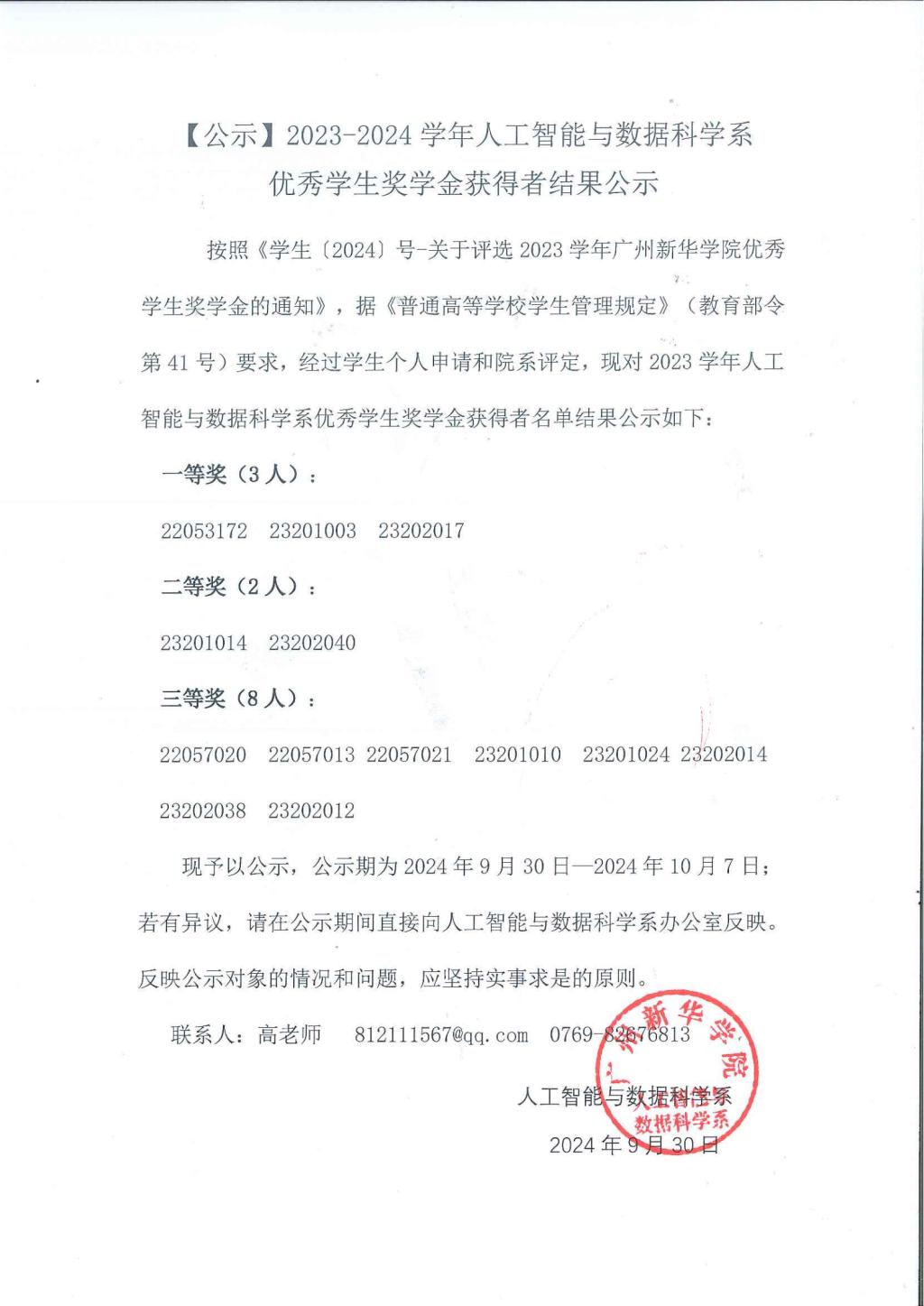 【公示】2023-2024学年太阳集团城网站2017系优秀学生奖学金获得者结果公示