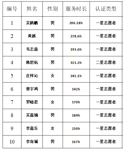 为动员我系学生积极参与志愿服务活动,进一步发扬“奉献、友爱、互助、进步”的志愿精神,依据《广东省星级志愿者资质认证管理办法》和《关于开展2024年度广东省星级志愿者资质认证工作的通知》开展星级志愿者资质认证工作,经过个人提交材料,我系志愿服务队审核,公示结果如下: