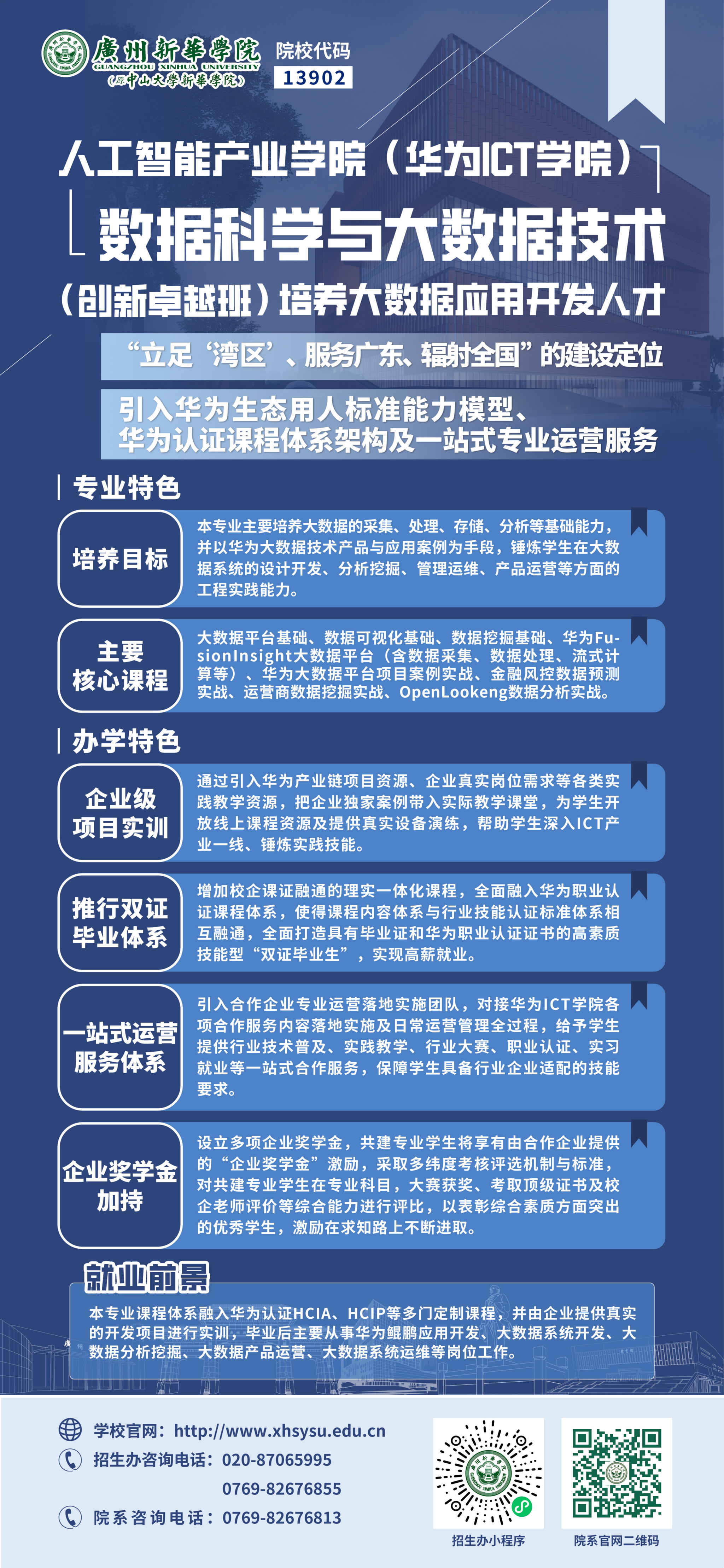 太阳集团城网站2017(华为ICT学院)-数据科学与大数据技术(创新卓越班)招生简介